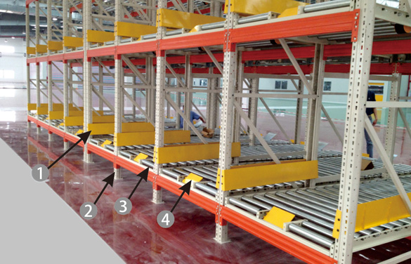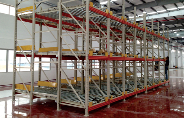 重力式(shi)貨(huo)(huo)架(jia)(jia)又稱為輥筒式(shi)貨(huo)(huo)架(jia)(jia),采用輥子式(shi)軌道(dao)或底輪式(shi)托盤(pan),軌道(dao)呈(cheng)一定坡度(3°左(zuo)右),利用貨(huo)(huo)物的(de)(de)自(zi)重,自(zi)動下滑,是一種節約空(kong)間、結(jie)構(gou)緊湊(cou)的(de)(de)系(xi)統(tong)。貨(huo)(huo)架(jia)(jia)區域不設內部通道(dao),只有出(chu)貨(huo)(huo)和進貨(huo)(huo)通道(dao),對(dui)于分(fen)揀貨(huo)(huo)物,這種系(xi)統(tong)是最(zui)快、最(zui)經濟(ji)的(de)(de)分(fen)揀系(xi)統(tong)。