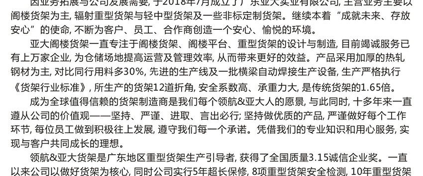 廣州領航亞大(da)貨(huo)架(jia)制造(zao)有限公(gong)司